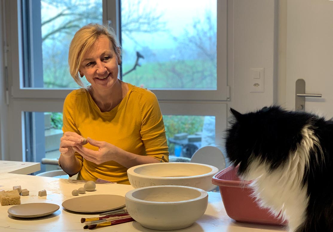 Die faszinierende Vielseitigkeit des Tones lässt mich schon seit 28 Jahren nicht mehr los! Gerne gebe ich meine Inspiration und meine langjährige Erfahrungen in meinen Workshops und Kursen für Gross und Klein weiter. Mein Atelier, in unserem Wohnhaus eingegliedert, liegt mitten in der Natur von Garten und Wiesen umgeben. Alle nötigen Werkzeuge, verschiedene Tone und eine grosse Auswahl an Glasuren stehen zur Verfügung. Das Atelier ist gemütlich eingerichtet und wir brennen unsere Werke in 3 verschiedenen Keramikbrennöfen. Die Töpferdrehscheibe rundet das Angebot ab.